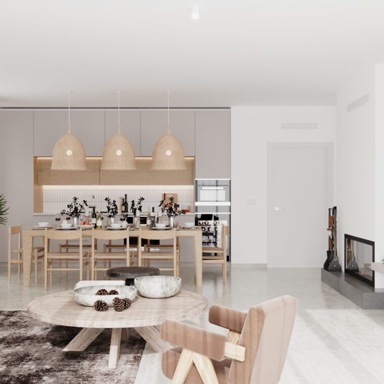 The modern Mediterranean interior with an exotic touch is our proposal for the Exclusive Gardens villas of the project Laguna Marina.